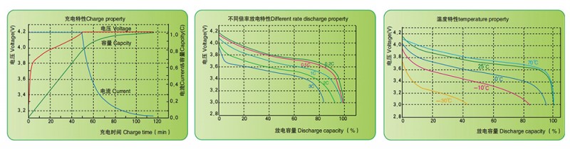 * 高溫充放電性能好,+70℃環(huán)境下放電容量>額定容量的98%;