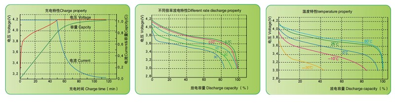 * 采用三元材料作為正極材料,倍率放電性能優(yōu)越,循環(huán)壽命800-1000次,剩余容量>額定容量的80%;